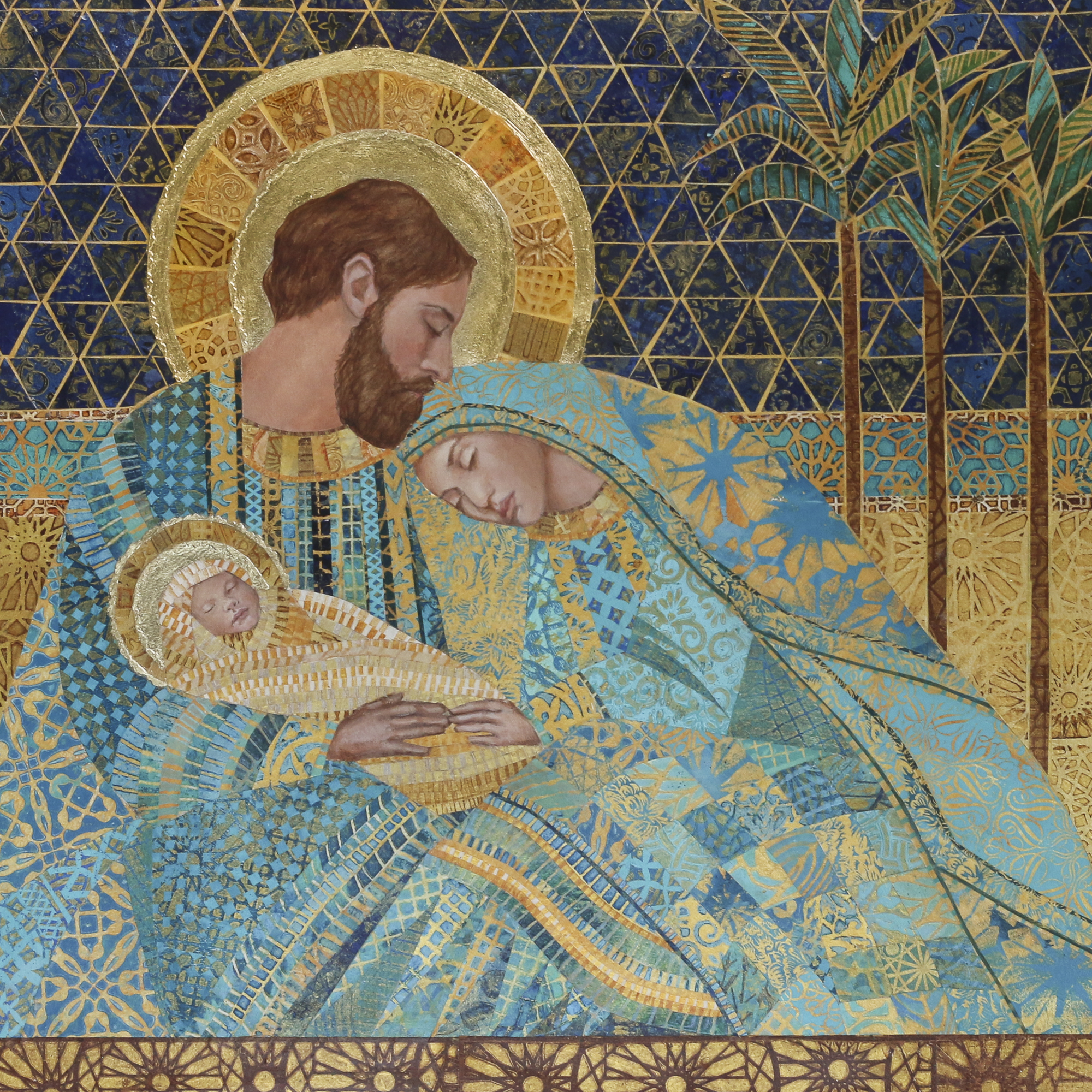 In Joseph’s Care Mary and Christ Child 20″x20″x1.5″ on cradle board.